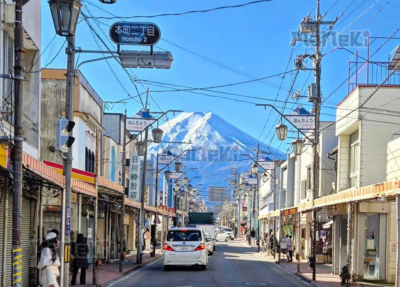 - Vẻ đẹp: Con phố mua sắm chính Honcho trải dài tít tắp, tạo cảm giác như đang dẫn thẳng lên đỉnh núi Phú Sĩ sừng sững ngay trước mặt. Những biển hiệu cửa hàng đậm chất retro hai bên đường càng làm tăng thêm vẻ hoài cổ cho bức ảnh.