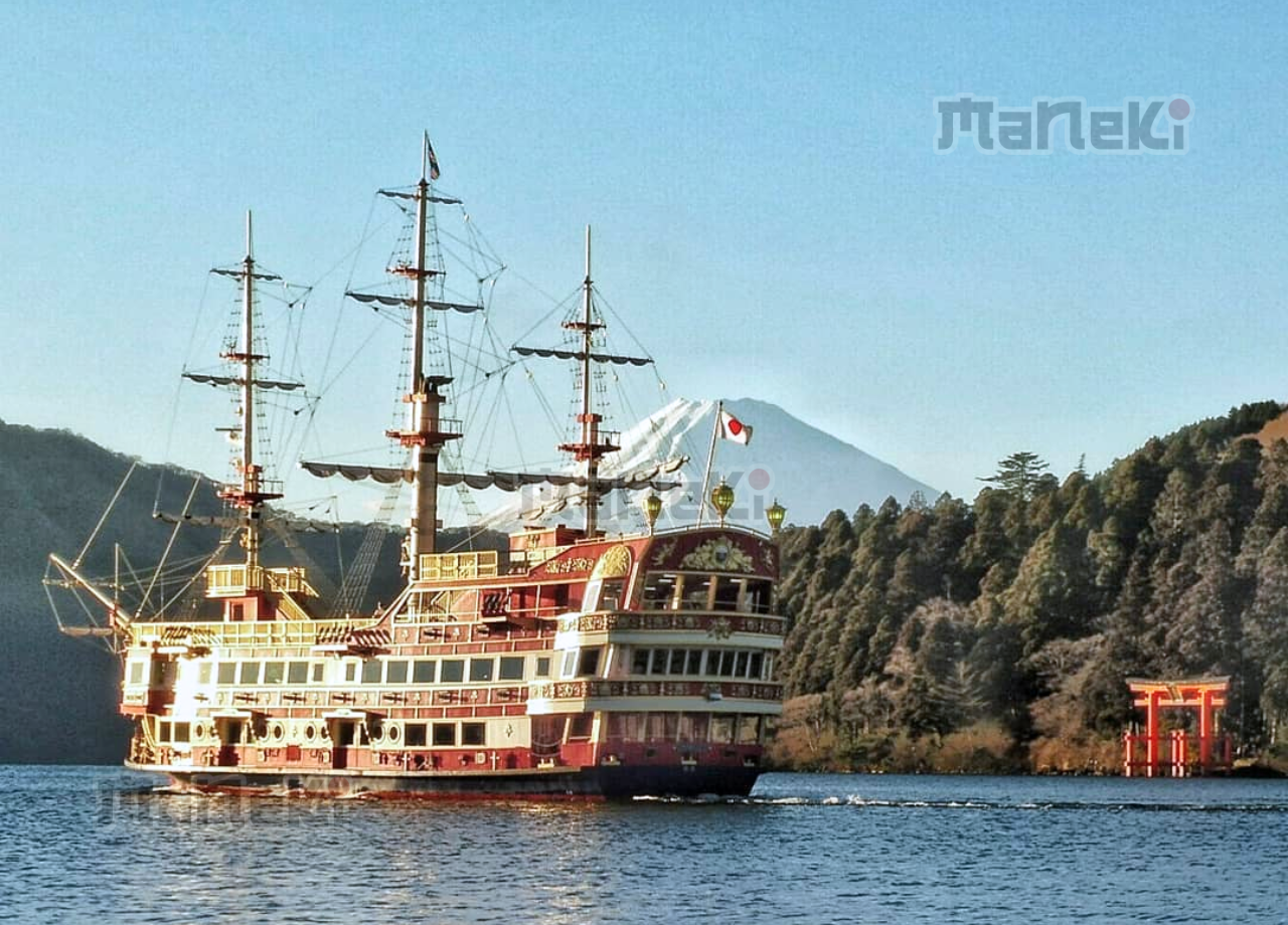 - Trải nghiệm độc đáo: Ngồi trên con tàu “cướp biển” (Pirate Ship) lướt nhẹ trên mặt hồ Ashi, xa xa là núi Phú Sĩ và cổng Torii thần đạo màu đỏ nổi trên mặt nước. Đây là một trong những khung cảnh lãng mạn và bình yên nhất mà bạn có thể tìm thấy.