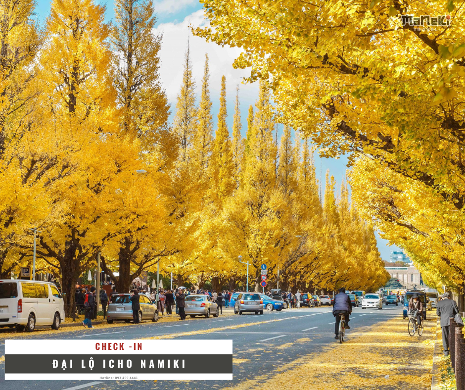 - Đại lộ Icho Namiki: (đối với các đoàn từ cuối tháng 11 trở đi, tuỳ thuộc vào tình trạng đổi màu của lá) Một trong những nơi tuyệt nhất để ngắm lá thu không đâu xa mà ở ngay khu trung tâm thành phố. Nằm giữa lòng trung tâm nhộn nhịp, đại lộ Icho Namiki là thiên đường của những con đường với hàng cây ngân hạnh, đặc biệt hơn khi nó khoác lên mình màu áo vàng từ khoảng cuối tháng 11 đến đầu tháng 12 hàng năm.