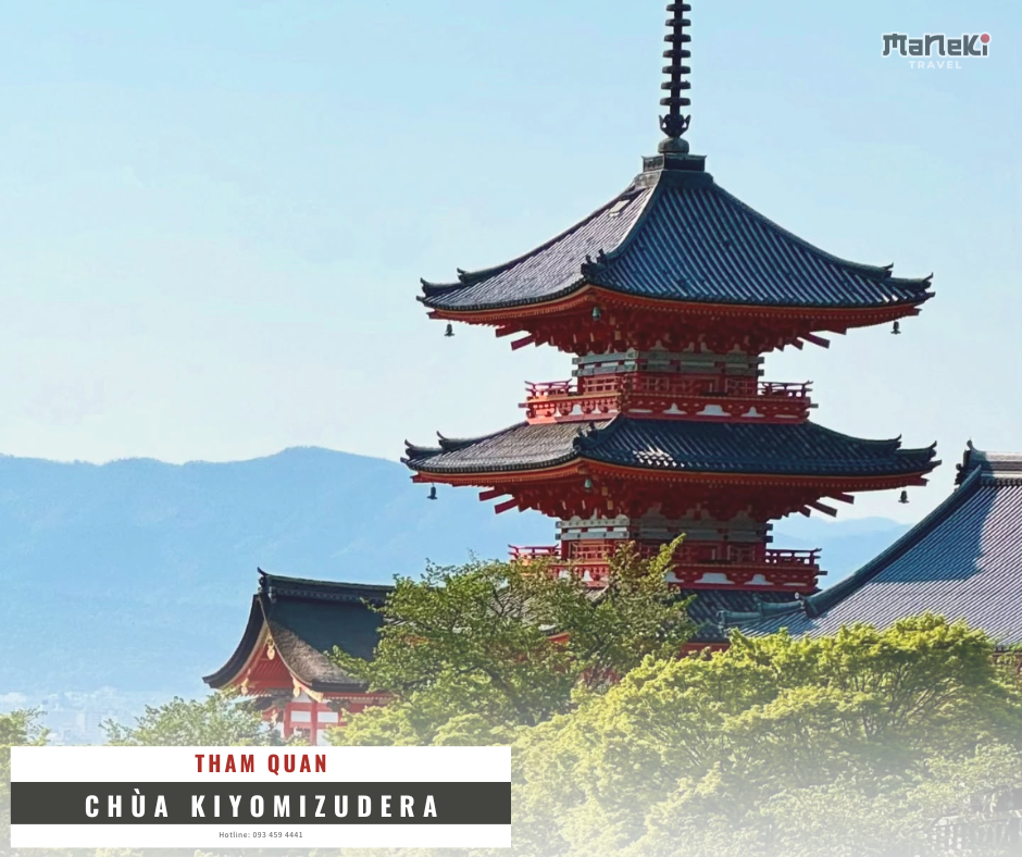 - Chùa Kiyomizudera: (hay quen thuộc với tên gọi chùa Thanh Thủy): một trong những địa danh tiêu biểu khi nhắc về vùng đất Kyoto. Thu hút du khách bởi quang cảnh thiên nhiên có thể ngắm nhìn từ ngôi chùa đóng cột gỗ chênh vênh giữa lưng núi.